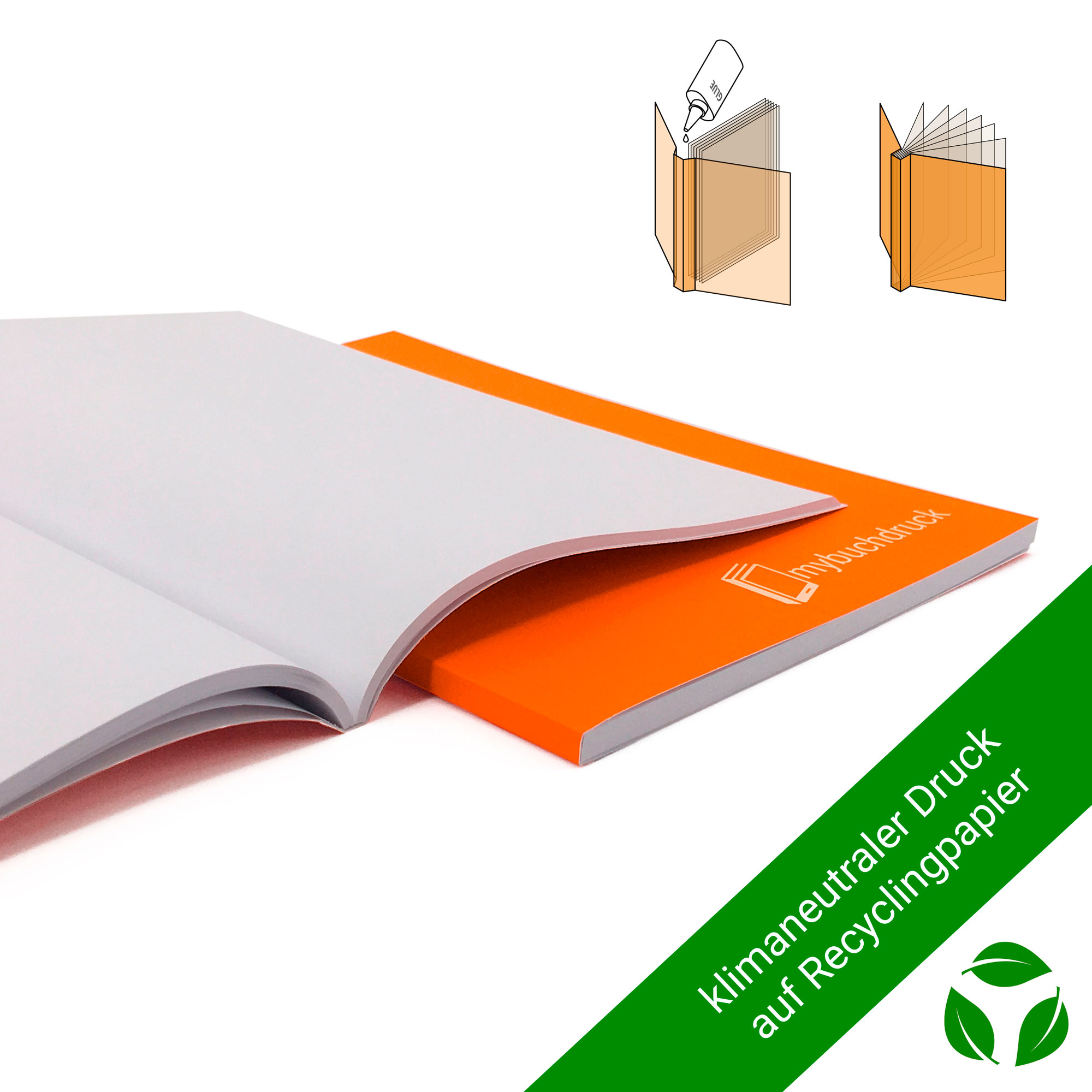 Produktinformationen "Umweltfreundliches Softcoverbuch mit Klebebindung"